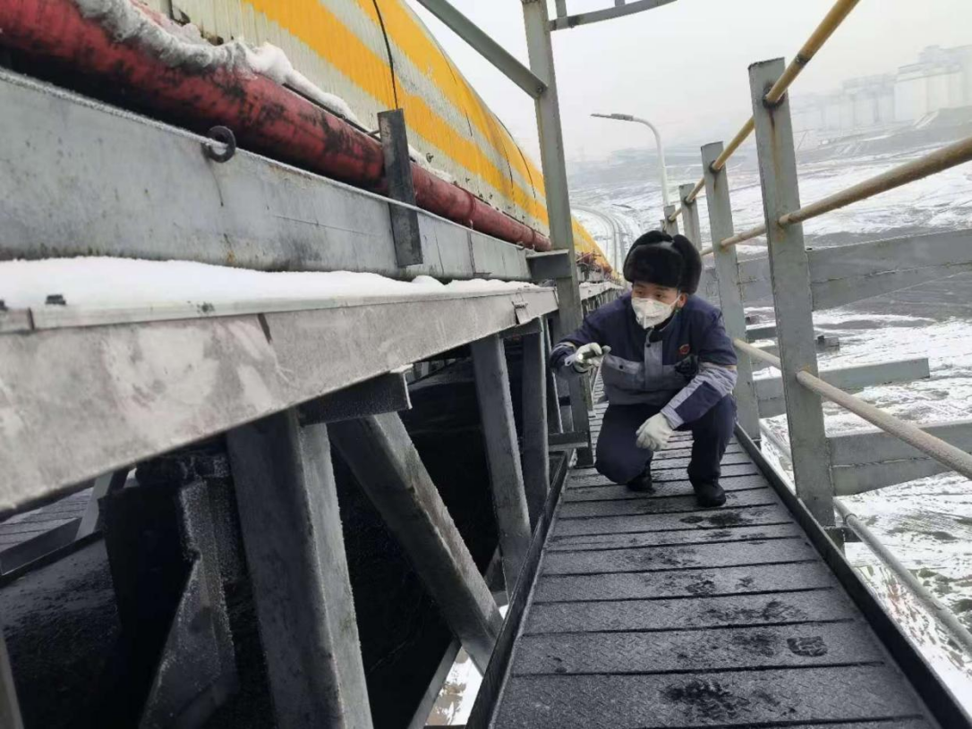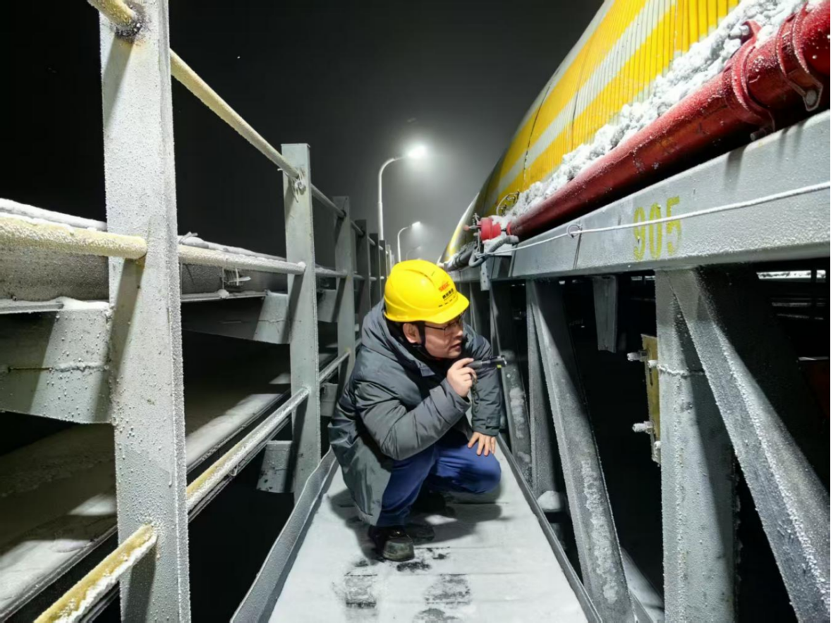 寒潮来袭后,区域用电用能需求激增,燃料稳定供应成为保供关键。陕能新疆依托与天池能源的深度协同合作,以皮带直供为核心,构建“日沟通、周调度”的动态对接模式,根据机组负荷变化精准调整供煤量,确保燃料供应与用能需求无缝匹配。同时,组建专项巡检小组,对输煤皮带系统开展每日1次全覆盖巡检,及时排查跑偏、异响、冻堵等潜在故障,备足皮带跑偏调整器、防冻剂等关键备件,组建应急抢修队,承诺突发故障1小时内响应、4小时内处置完毕,全力保障“煤流”持续稳定。