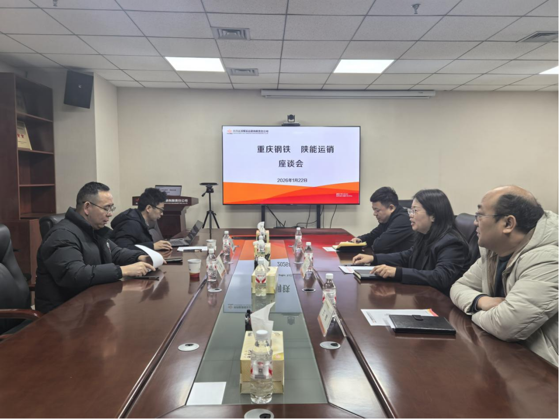 1月22日,陕能运销与重庆钢铁在西安开展交流座谈,双方就深化煤炭供需领域合作、保障供应链稳定等议题展开深入交流。重庆钢铁营销中心采购部副部长杨华,陕能运销党总支副书记、总经理参加座谈。