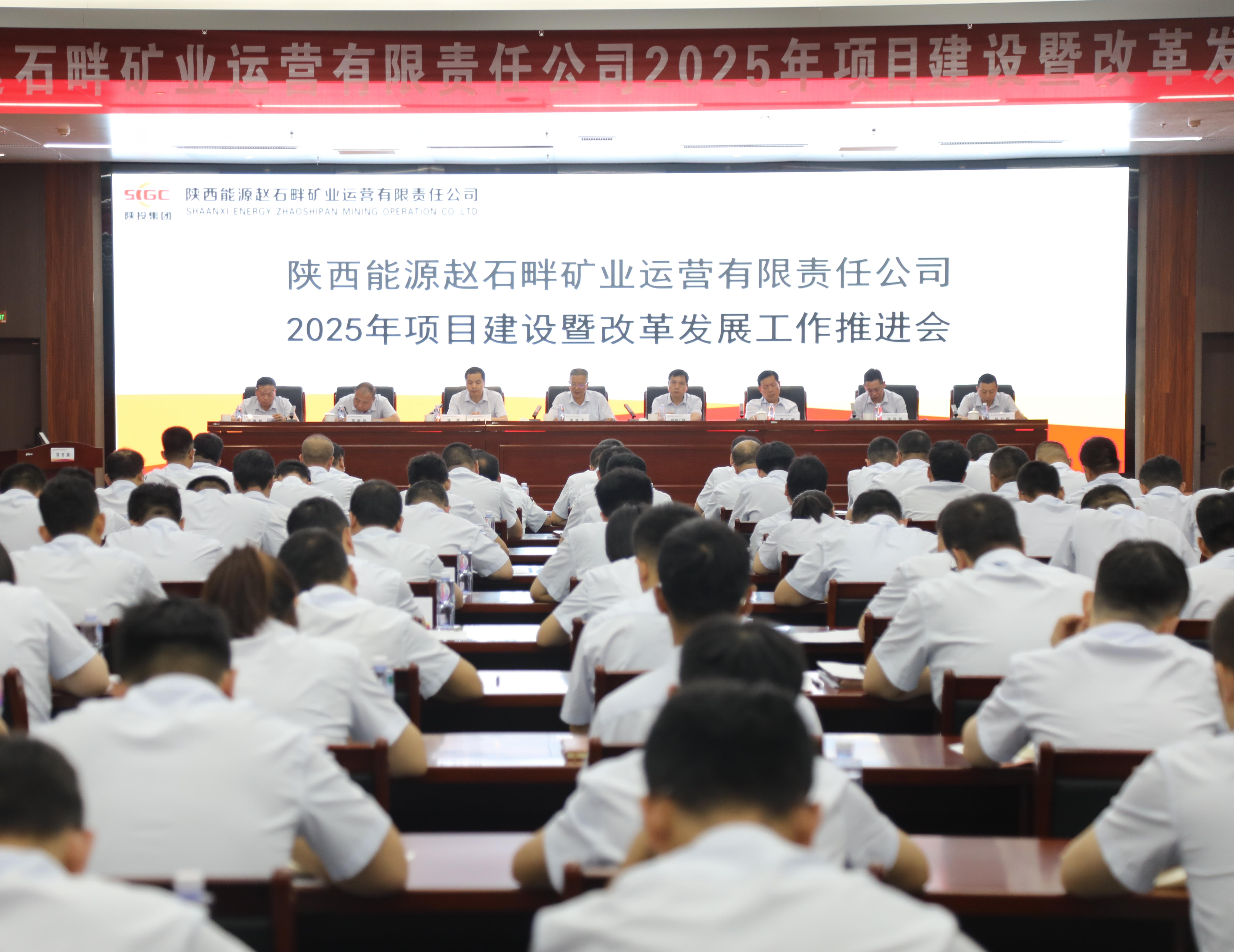 7月29日上午,陕西能源赵石畔矿业运营有限责任公司召开2025年项目建设暨改革发展工作推进会,公司领导班子成员、各部门区队职工代表及参建单位代表共计160余人参会。会议传达了集团公司2025年改革发展工作推进会精神,全面总结上半年工作成效,部署下半年重点任务,动员全体干部职工锚定联合试运转目标,以实干攻坚推动矿井高质量发展。